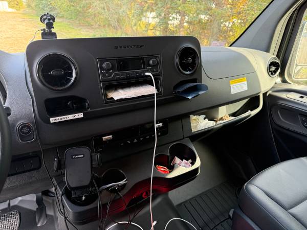 2022 Mercedes Sprinter 2500 144”, 3.0L V6 Turbo Diesel, 8,000 Miles, 12 Passenger, 1st Owner, No Accidents, Clean Title, Black with Black Leather Interior. Fully Loaded, Bluetooth Audio, Keyless Start, USB-C Charging Ports, Warranty until 12/7/25, Front and Rear AC, Rearview Camera, Active Brake Assist, serviced at Mercedes of Smithtown with Records, Runs & looks like new.