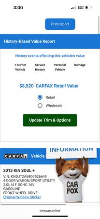 2013 Kia Soul + with only 60K miles. This is One Owner Vehicle. Runs great. 2 sets of keys. Sunroof. Backup camera. Fresh oil. Perfect tires. Bluetooth. Never in accident. Clean title on hand. Please check all photos for vin and CARFAX.
