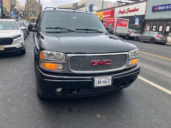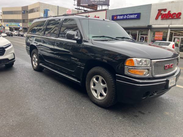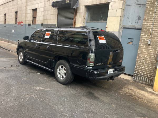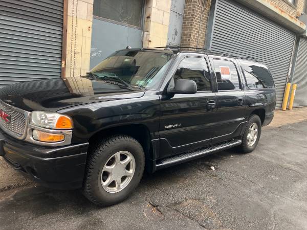 2005 GMC Yukon Dinali, XL AWD V8 Votech engine, automatic transmission, black exterior grey leather interior front and rear heated seats, power window locks, mirrors, sunroof, modern Bluetooth screen radio front and rear recording camera rear DVD player third row eight passenger many more options tires have about 60% thread left. AC unit has refrigerant. Leak needs to be fixed motor and tranny run good and strong 199k miles. $4500.or best offer.