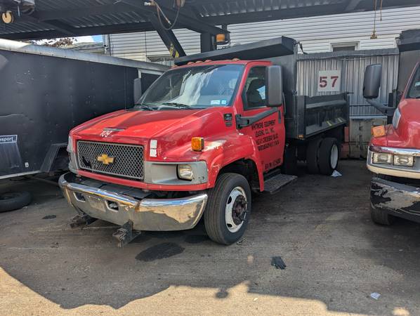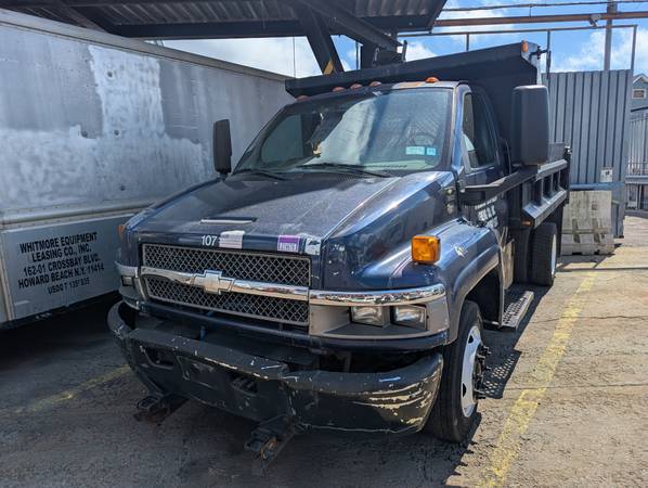 A 2006 Chevy Kodiak dump truck. Great for hauling dirt, rocks, debris and more. With a working lifting bed and snow plow mounts installed (snow plow kit not included but call and ask about adding it in).