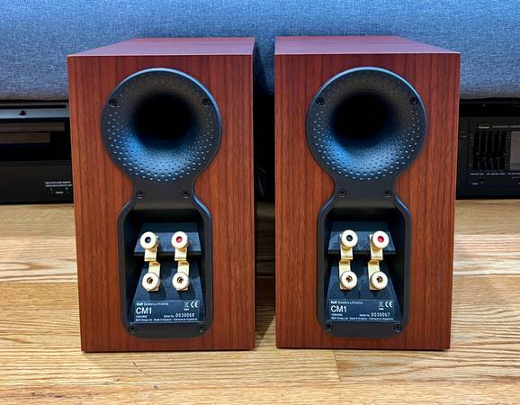 A pair of Bowers & Wilkins CM1 bookshelf speakers in excellent working condition, no scratch. Perfect tweeters, no dimples/dents (see pictures). Made in UK. Part of B&W’s highly regarded CM Series, these speakers deliver rich midrange, detailed treble, and surprisingly deep bass for their compact size. Ideal for stereo setups or as part of a home theater system.