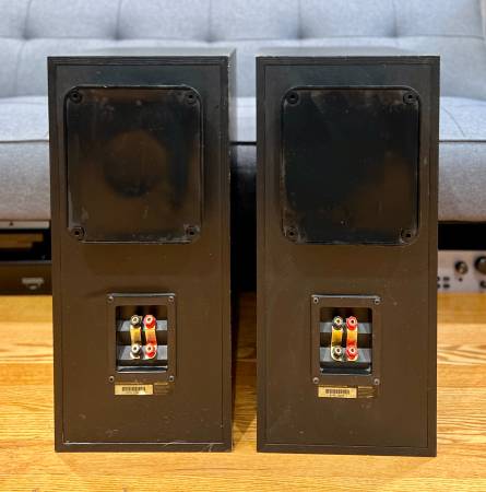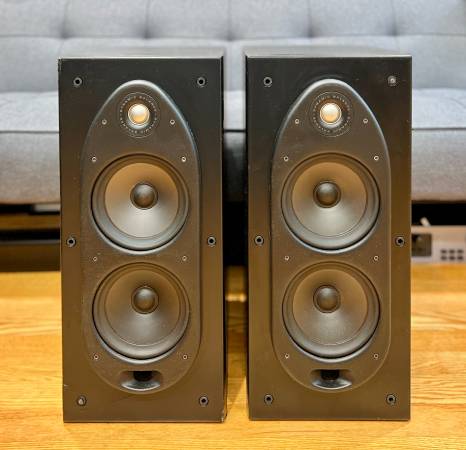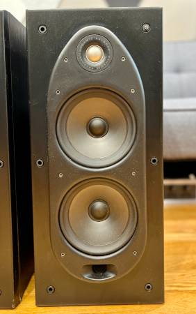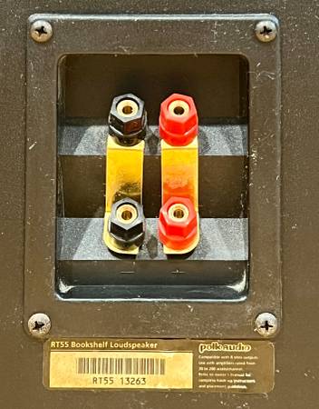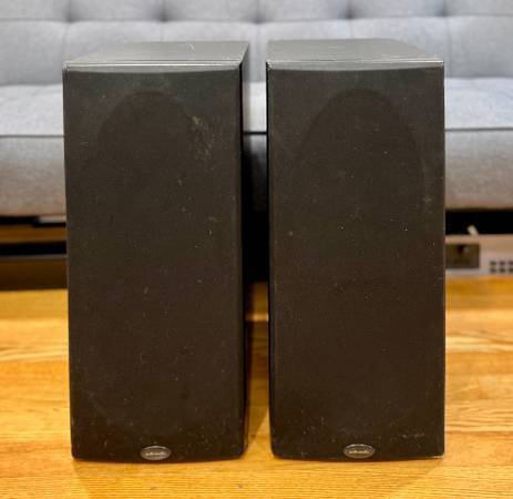 These are large, audiophile-grade bookshelf speakers from Polk’s respected RT Series. Great sounding. Solid and heavy, each 35 lbs. Cosmetic scratches and small chips on the cabinets, but purely cosmetic - fully functional and sound excellent.