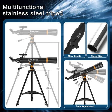 ABOTEC Telescope for Adults Astronomy, 90mm Aperture 800mm Refractor Telescopes for Kids & Beginners, (32X-400X) Multi-Coated High Transmission Telescope with Carry Bag & Phone Mount &Wireless Cont