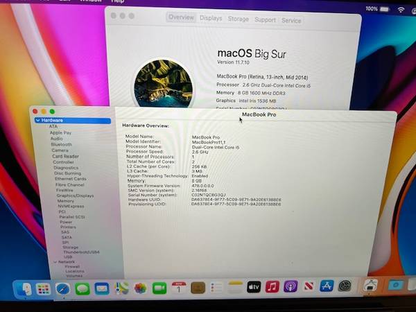 NEW BATTERY! NEW SPEAKERS! Apple MacBook Pro 13.3” Retina, Intel Core i5 2.6GHz 8GB RAM 256GB SSD Includes Original Box and Apple Charger.