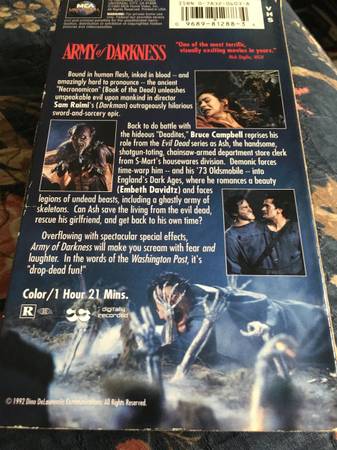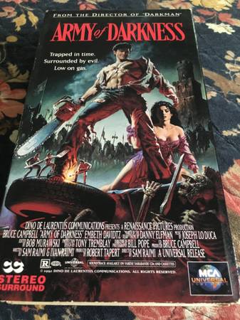 See pic calls texts when cash ready pickup no meetups rare vhs tape 1992 Army of Darkness $50.00 no trains here never in nyc no emails (5.1.6.4.7.6.3.3.9.8.) Cash humans only
