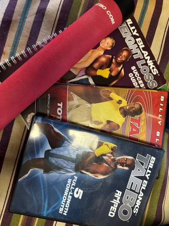 20 Assorted exercise dvd's, TAEBO Bar and guide book included, sold as a lot, 22pc (approx. $1.00ea pc.) Cash only, Pick-up only. No need for the gym rotate routine workouts at home and get in top shape! Boxed and ready to shape you! Authentic DVD's from original owner, purchased from retail stores.