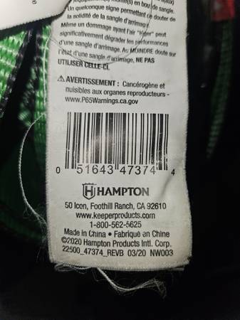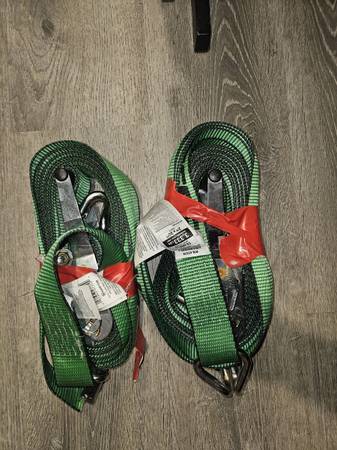 TWO 2-IN X 30-FT TIE-DOWN STRAPS FOR SALE NEVER USED IN EXCELLENT CONDITION. $25 EACH PICK UP IN THE EVENING OR WEEKEND.