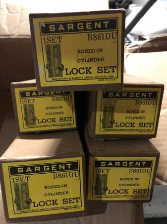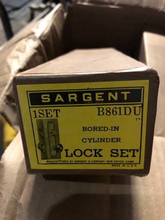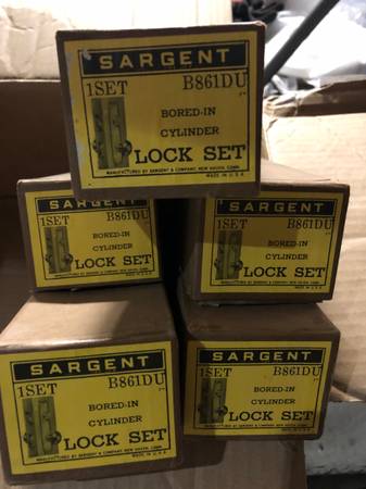 Five vintage Sargent lock sets never opened or used. They were leftover in my basement when my English Tudor House was built in 1927. They are Solid brass and made in the USA. They are all complete with locking deadbolts, each set has 2 keys. $550 for all Five sets or $150 each. They would be great for new construction or a Tudor or brownstone renovation. You will never find locks like this anywhere.