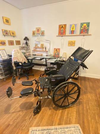 Invacare tracer sx5 recliner . Reclines to lay down position . Barely used , very easy to push ,, feels light , comfortable to sit in . Reclines to flat position for resting and sleeping