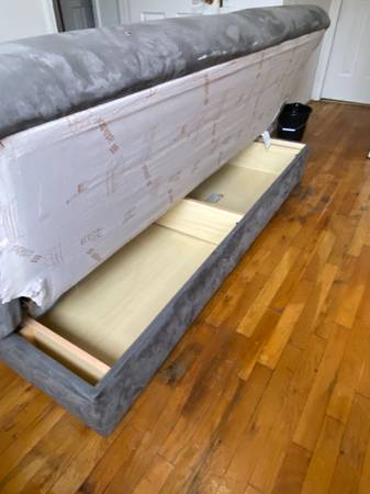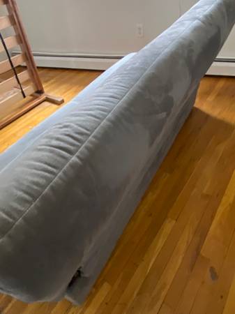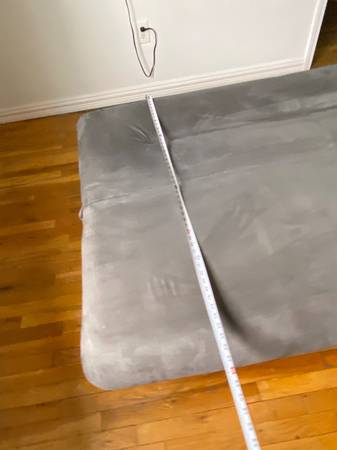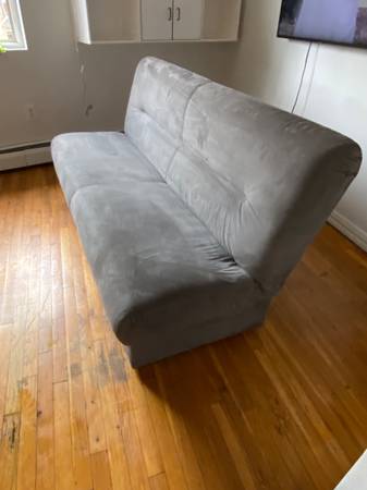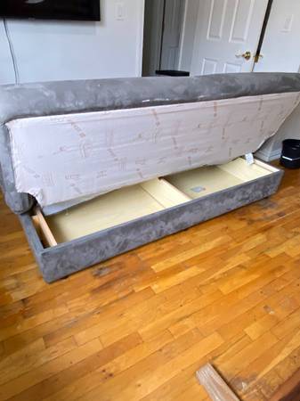 Gray Full size futon sofa sleeper With bottom storage solid wood frame Excellent condition Dimensions 72inches x 49 inches One small mark on lower bottom corner Not visible see last picture