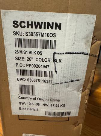 I am selling a 26 inch brand new in the box black Shwinn Signature bike. I put the bike together so that everyone can get a visual of the bike. If interested call me at , thank you. Make me an offer