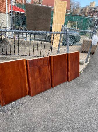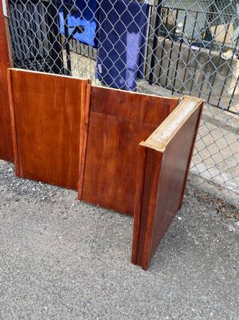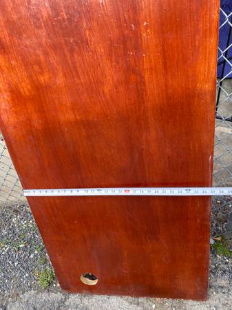 Solid wood custom office table two *ft slabs with support post Stained cherry wood with bored hole for wires and plugs Solid wood in very good condition