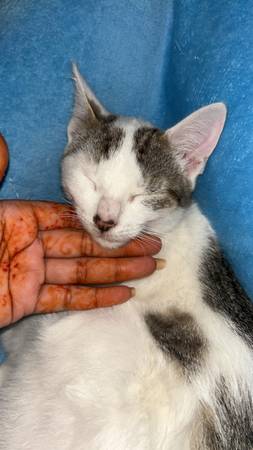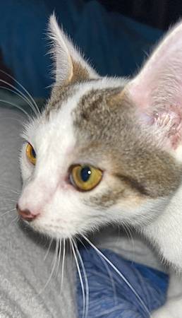 5 months old white kitten ready for their forever home. She is super active and love to chase her siblings as well as being super affectionate and loving. She is also litter and scratch post...