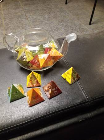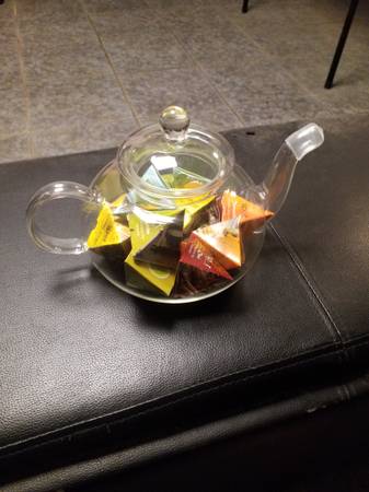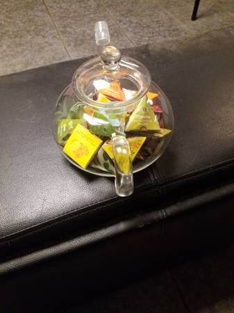 Glass tea kettle full of different flavors including lemon ginger, turmeric, chai, and mint. If you love tea then this set is for you. Also great as a gift. This set is brand new. Comes with a free...