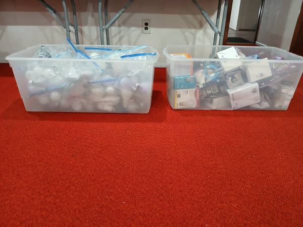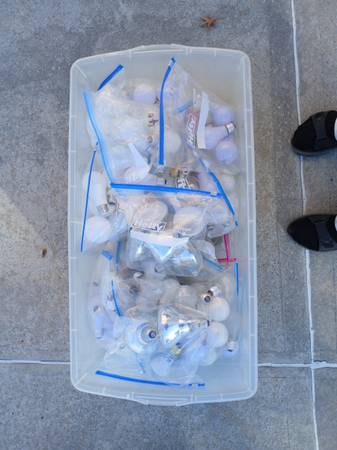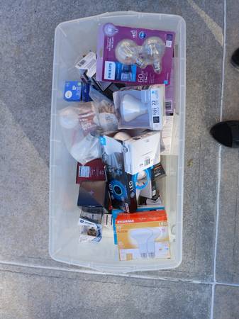 Two big bins full of Light Bulbs. Great for a Landlord of an apartment building.