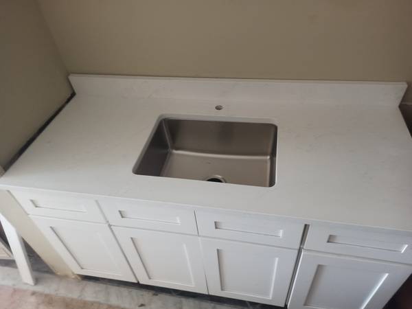 This includes standard fabrication and up to the usage of one 126x63 slab. Include one sink cutout and EZ edging. Additional fees may apply for any backsplash or intricate cuts.