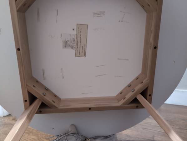 Amazon rivet table non-smoking home. Is not perfectly white but it comes off with elbow grease, More than I was willing to give but did get some off. Completely functional. No issues with it from a...