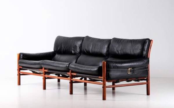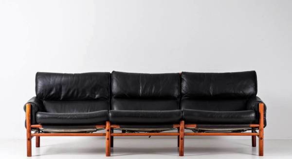 3-Seater sofa model Kontiki designed by Arne Norell like new black leather. Produced by Arne Norell AB in Aneby, Sweden. Very good condition! Leather was restored with top-grain leather by a restoration expert.