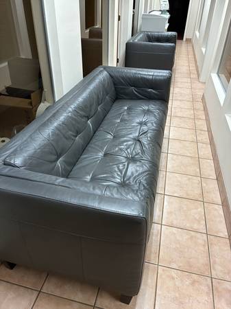 Grey leather couch 84", Grey Leather Love seat, brown 6ft dresser 6 drawers see pictures. Ready for inspection and pickup only, in Astoria, Queens, NY. all offers will be considered... send me your...