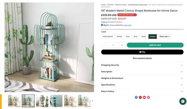 This modern metal cactus-shaped bookshelf adds a touch of color to your home with its unique shape and shows your unique design taste.