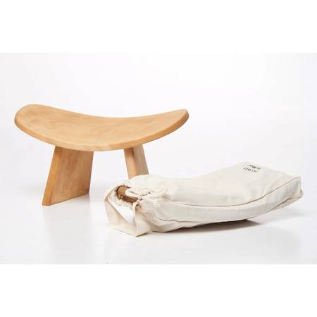 The curved seat of this well-designed cherry wood meditation bench aligns the spine for comfortable sitting in the "seiza" or kneeling position. The IKUKO bench is designed to be carried everywhere you go — the legs are removable, and it comes in an organic cotton travel bag. Each bench is unique due to natural variations in the wood.