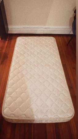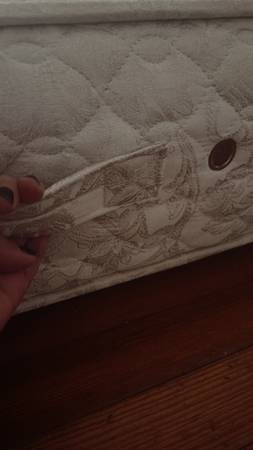 Extraordinarily firm and resilient, clean as hell, a classic, with a few harmless stains (contact me for details). Originally around $1200. There are side vents and handles plus a lovely pattern. No bed frame included (you won’t need one, temporarily), so the price is negotiable.