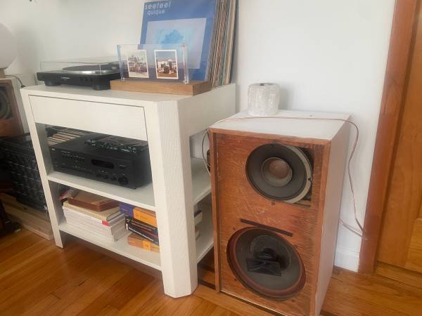 This is the bedside table by Made Goods - I am using it for my record player/receiver because it's pretty big. Really lovely, soft, organic modern design. https://www.madegoods.com/lena.html
