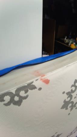 It's in great condition clean except a little grape juice stain our 4 year daughter brought us breakfast in bed. Spilled the juice accidentally.