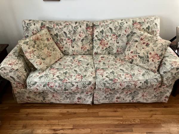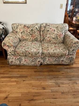 Aside from several scuffs, this living room set is very comfortable, has been kept clean and in very good condition. Includes the sofa - which turns into a comfortable pullout bed, a love seat, a...