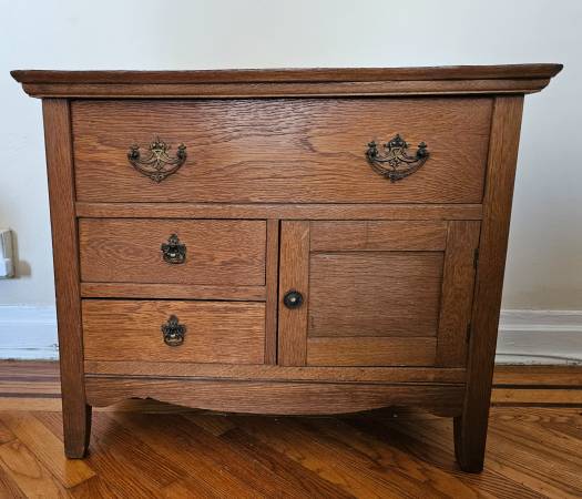 Antique Victorian Style Oak Dry Sink Cabinet. 32" x 18.25" x 26.5". Some signs of wear.