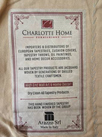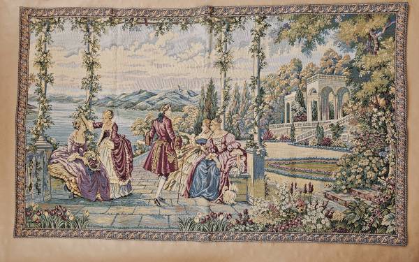 Dame E. Lago Italian Tapestry by Francous Boucher 45" x 26" 41% cotton, 53% viscose, 6% other fabrics Backed with lining and tunnel fot easy hanging. Woven and hand finished in Italy.