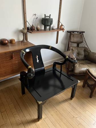 Chin Hua Black Lacquered Chinoiserie Armchair James Mont Horseshoe...