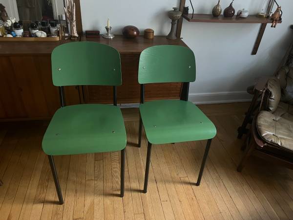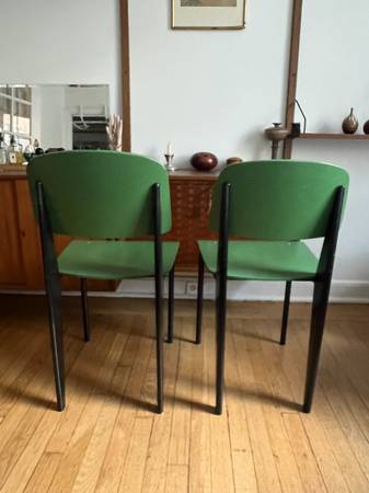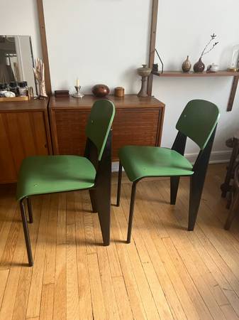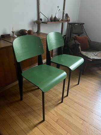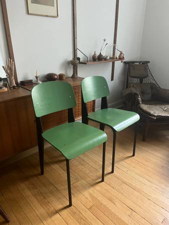 Jean Prouvé inspired Style Mid century Green and black Dining Refinished Chairs $220 each Chairs are pre-own and were professionally restored. We have more chairs available, not refinished yet. You...