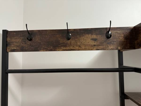 Like new garment rack for sale. Originally purchased for $265. Selling for $150. Good for hanging clothes, storing shoes, purses and 6 hooks for hanging things.