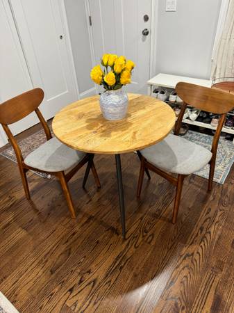 West Elm Luna Bistro Table (30” W and 29” H) And two West Elm Classic Cafe Dining Chairs Recently moved and no longer have space for the table and chairs.
