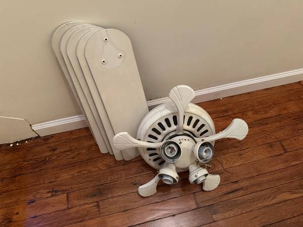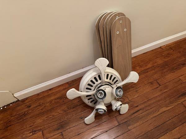 *..* White Ceiling Fan, 5 Blades for Powerful Cooling.. + Multi LIght Illumination* - $30 no glass shades.. Hence the low, low price.. was $75 Dismantled & Ready to go.. White Compact window fan...