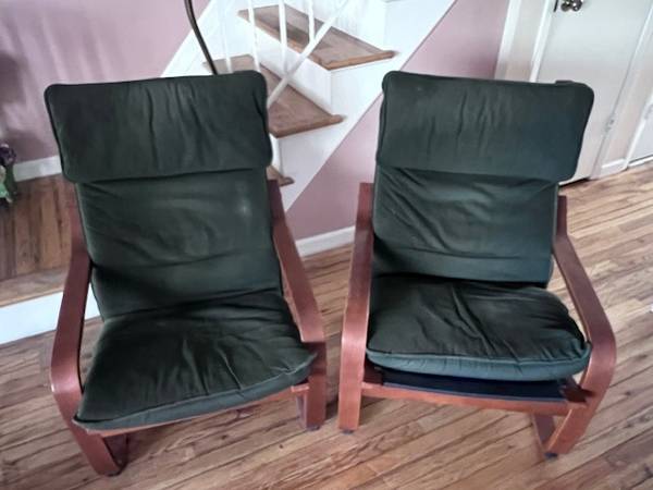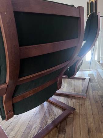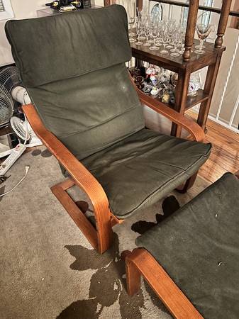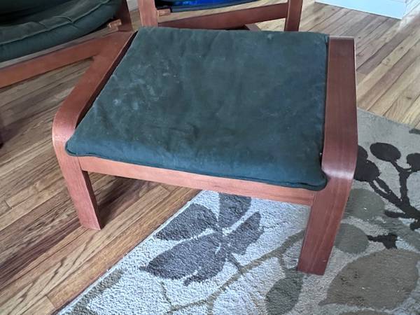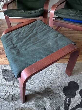 Two Ikea Poang Chairs and One Footrest Blue, Used but clean condition $30 Cash Pick up Only