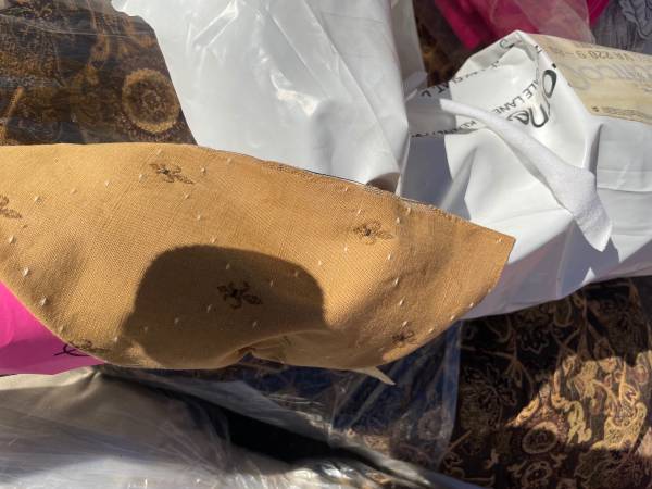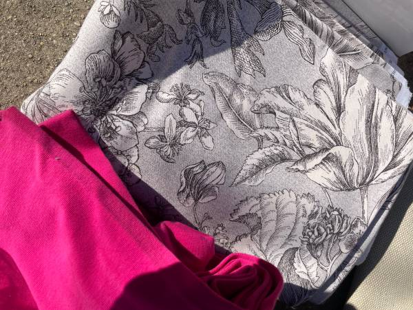 -Petite Fleur de Lis mustard Jaq 330 Fabric, over 3 yards $50 in original Calico Corners roll and plastic, clean