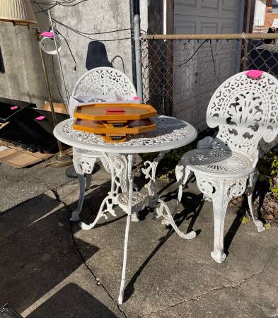 -White 3 piece Bistro set outdoor cast Aluminum -Table and chairs set of 2 for garden $30
