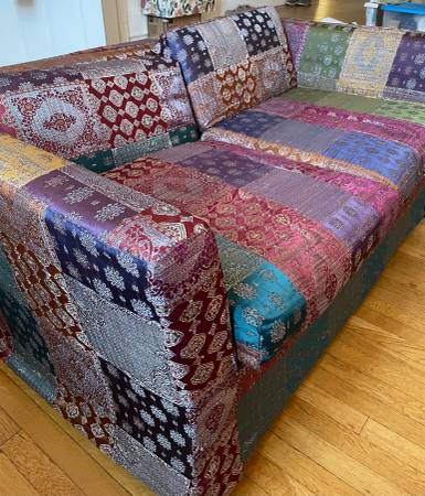 -Loveseat upholstered plus white custom made ivory cover w/individual zippered seating cushions $50 (SOLD)
