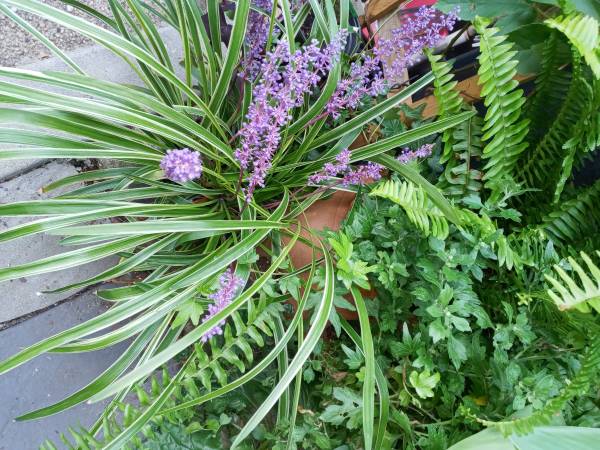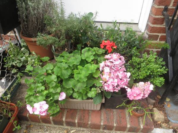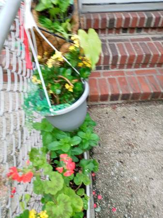 Many garden pl;ants, planters, wire hanging baskets and window boxes