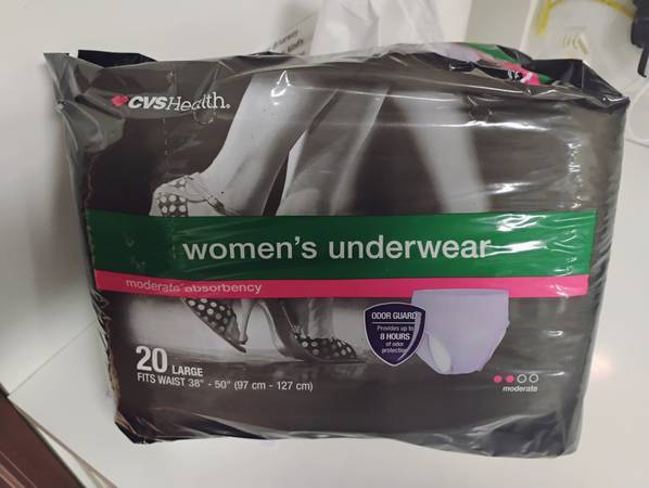 CVS Women's Underwear Moderate Absorbency, 20 Count, Large 2 packs for $20. Brand new sold as 2 packs only Cash only Pick up in forest hills.