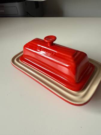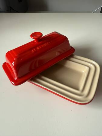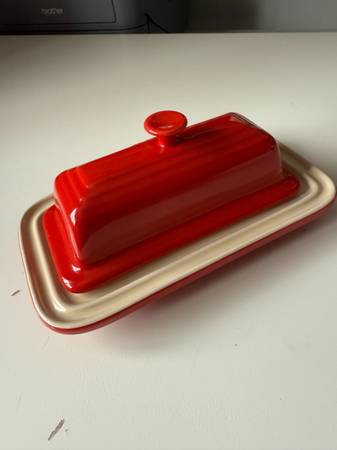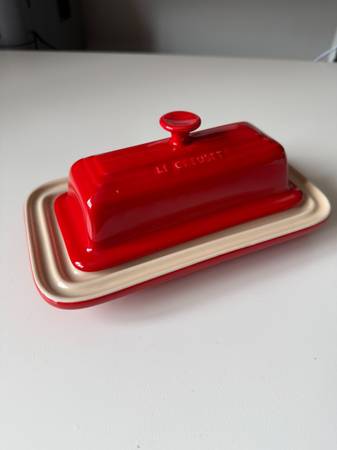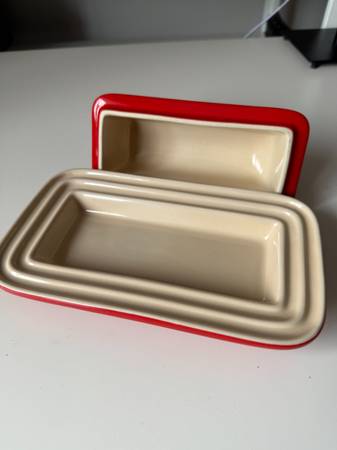 New Never used. Le Creuset red cherry butter dish. Collectible.
