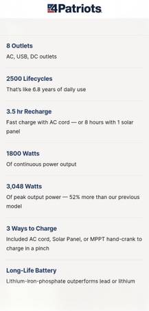 4Patriots Power Generator 1800 Watts Brand new sealed box