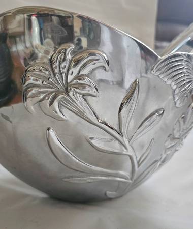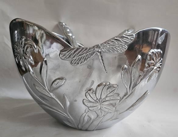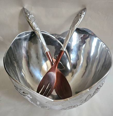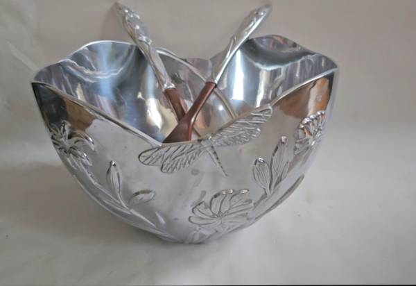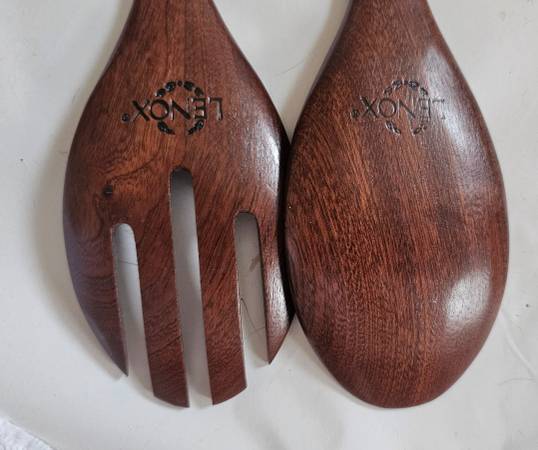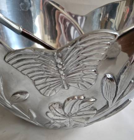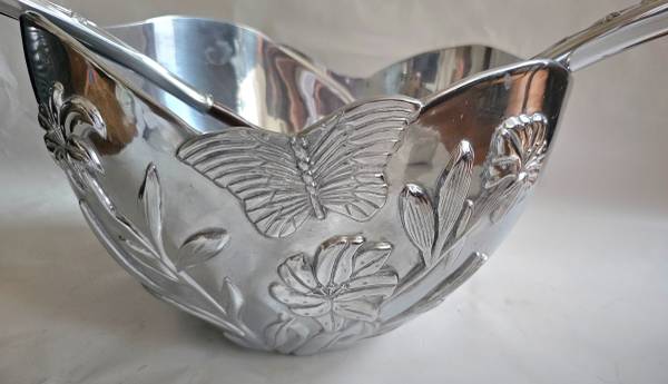 LENOX Butterfly Meadow Metal Large Bowl with LENOX Wood and Metal Handles Salad utensils