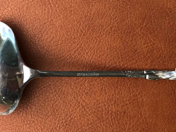 This elegant about-5½-in.-long cream ladle is in Reed & Barton's wild rose pattern. It has a elongated bowl with a pouring spout and a gently curved handle.