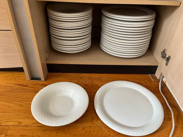 Left from a closed restaurant. The soup bowl measures about 9" in diameter and the dinner plates about 11" Sold as a set.