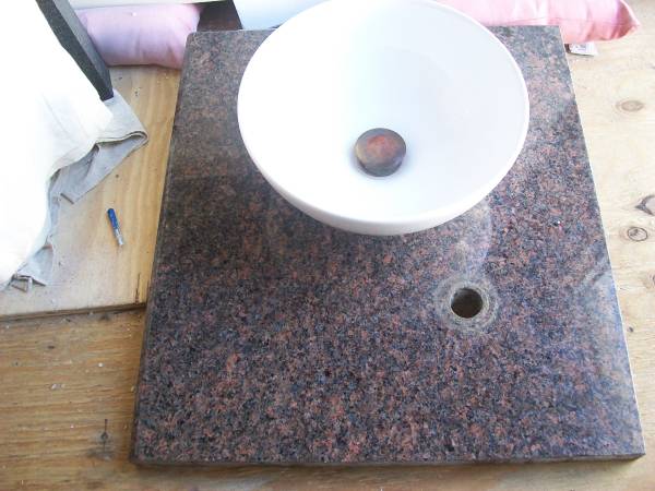 This is a 24 inch granite vanity top with a bowl sink and mirror excellent condition. NO TEXT OR EMAILS !!!!
