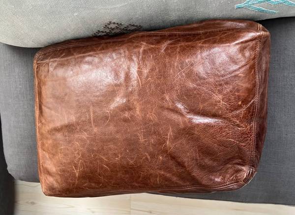 Cognac Brown Genuine Leather Sofa cushion cover Leather can be crafted and repurposed or can be used as floor seat cushion or turned into anything from small pillows to wallets, etc. Measures 21...