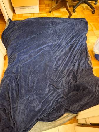 Two weighted blankets available. $10 each blanket. Gray one is about 5 pounds? and blue one is heavier - around 10 pounds? Barely used.
